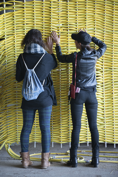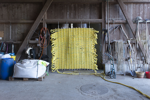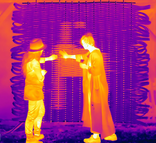 Die Arbeit Hotties in the Neighborhood von Badel/Sarbach zeigt die Silhouette eines Tieres, die nicht über den visuellen Sinn, sondern über den haptischen Sinn – also durch Berührung – erfahrbar ist. In die aus Schläuchen gewebte Struktur fliesst heisses und kaltes Wasser. Mit einer hochauflösenden Wärmebildkamera, die nicht Teil der Installation ist, hat das Künstlerduo ein Bild des Werkes erstellt, das in der Publikation HOX zu sehen sein wird, die an der Finissage vom 3. Oktober ihr Release feiert. Ausgangslage dieser Arbeit ist Badel/Sarbachs Interesse für Entropie und Körper mit den Grenzziehungen zwischen den menschlichen und den nichtmenschlichen Körpern sowie dem Körper als stellarem Speichermedium.