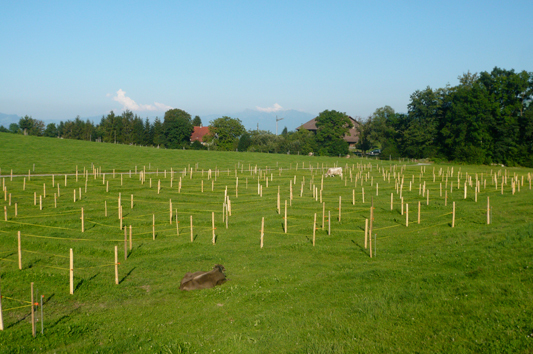 Am 24. April 2010 startete das Projekt "cowmaze" von Christoph Draeger ins zweite Jahr. Nach der erfolgreichen Beweidung durch die beiden Jungstiere Aron & Alex,wurde die Installation dieses Jahr durch die beiden Kälber Bella & Bianca neu bestossen.