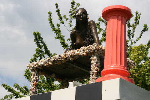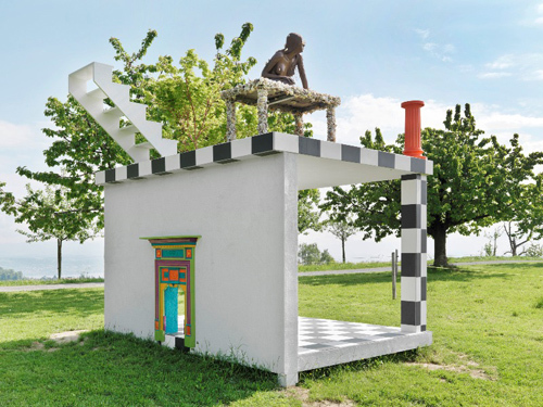Bemaltes Holz, Bronze, Kacheln, verschiedene Materialien