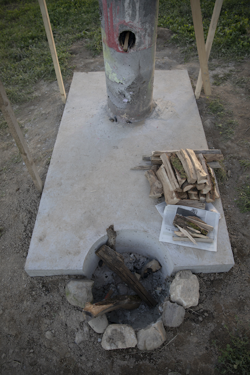 Die auf einer Erhöhung gelegene, gleich neben den Kirschbäumen platzierte Skulptur ist Unterstand und Kunstwerk zugleich. Die integrierte Feuerstelle ist ein Ort des Zusammenkommens und des Aushandelns. Zum einen wird den Besucherinnen ein Treffpunkt geboten und zum anderen wird durch die formgebende Technik des Gusses und das Zusammenwirken unterschiedlicher Materialien eine atmosphärische Dichte geschaffen. Dem Prozess des Verfalls ausgesetzt, entwickelt die Skulptur eine Analogie zur Fragilität des Menschseins. Patrick Ostrowskys Arbeit zeigt die Entwicklung, die bereits die Kunsthistorikerin Miwon Kwon beschrieben hat: Weg vom Kunstwerk, dessen konkreter Ort - beziehungsweise die Lokalität – omnipräsent ist, hin zu einem erweiterten Ort, der die soziokulturellen Kontexte miteinschliesst.